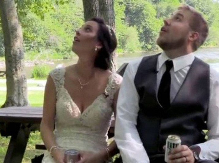 Noivos escapam por um triz de queda de galho durante festa de casamento