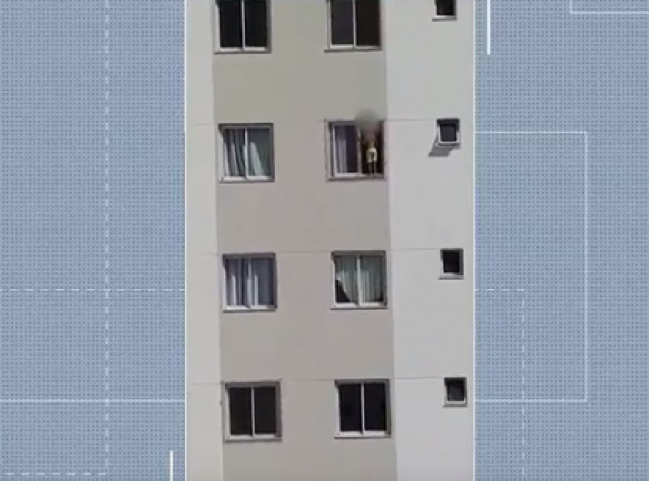 Criança de 4 anos anda no parapeito de janela no 18º andar de prédio