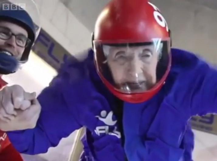 Bisavó comemora 102 anos fazendo paraquedismo em túnel de vento
