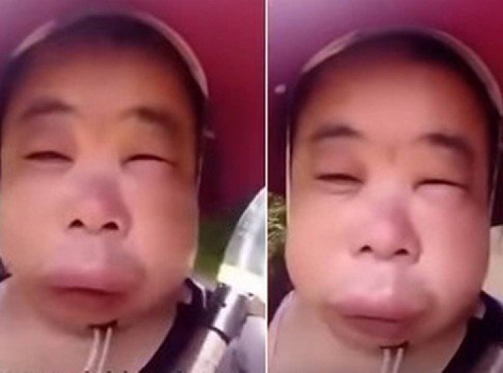 Chinesa fica com o rosto deformado ao tentar tirar mel de colmeia