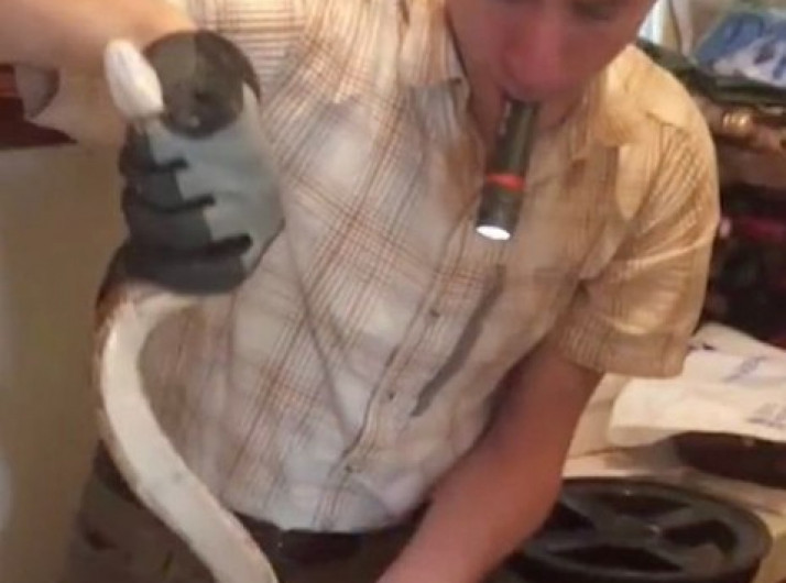 Família descobre duas cobras dentro de canos na lavanderia