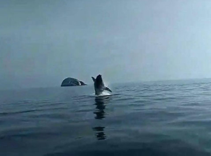 Filhote de jubarte dá salto surpresa e encanta pesquisadores
