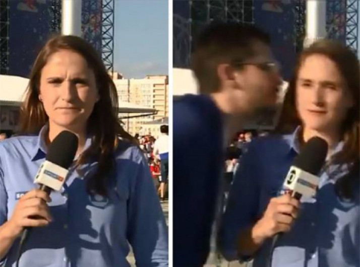 Repórter da TV Globo reage após tentativa de beijo de torcedor