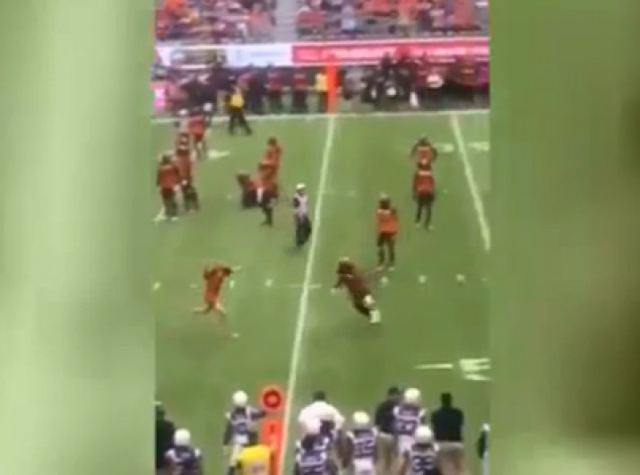 Jogador de futebol canadense 'apaga' invasor seminu com trombada