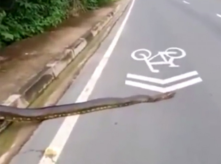 Sucuri atravessa avenida e assusta motoristas em Manaus