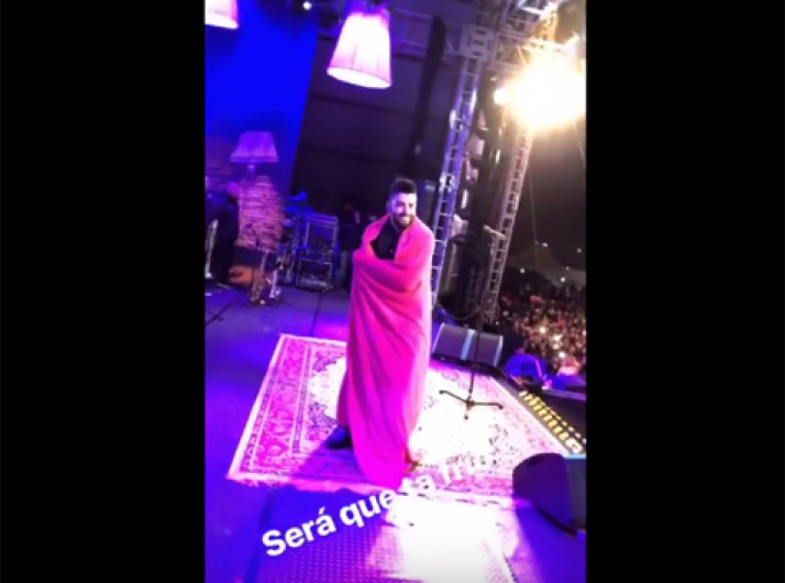 Por causa do frio, Gusttavo Lima faz show enrolado em cobertor