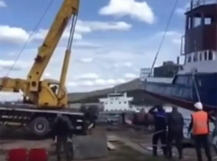 Guindaste não suporta peso de barco e acaba caindo em rio