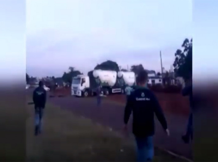 Caminhoneiro enfrenta manifestantes com motosserra para furar bloqueio
