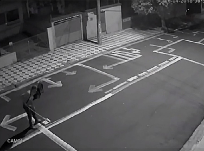 Homem pinta sinais em rua durante a madrugada e intriga moradores