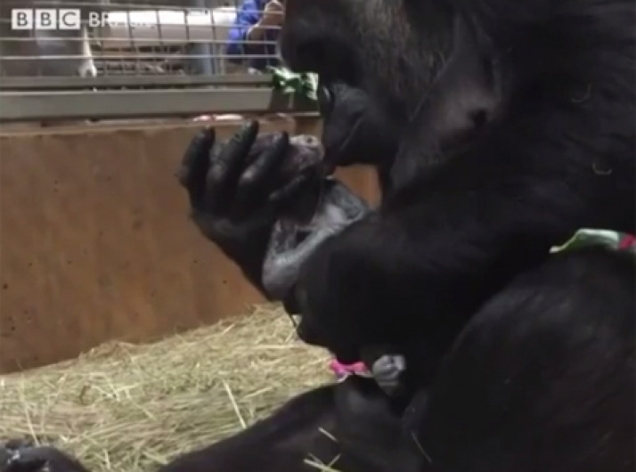 Mãe gorila emociona zoológico ao beijar filhote recém-nascido