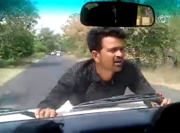 Durante protesto manifestante se joga no capô de carro e fica pendurado