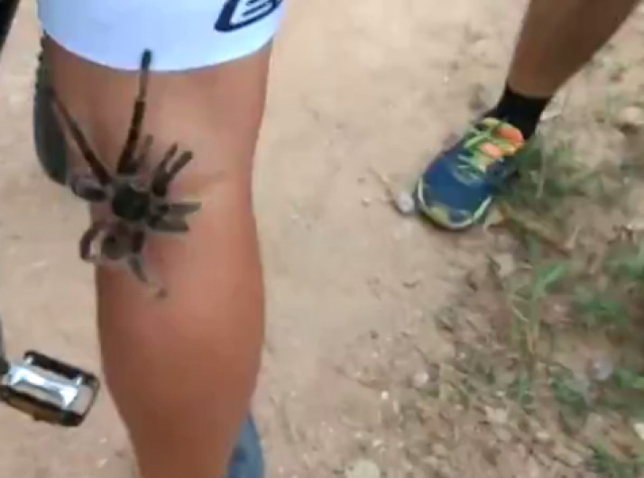 Tarântula surpreende ao subir na perna de ciclista em trilha