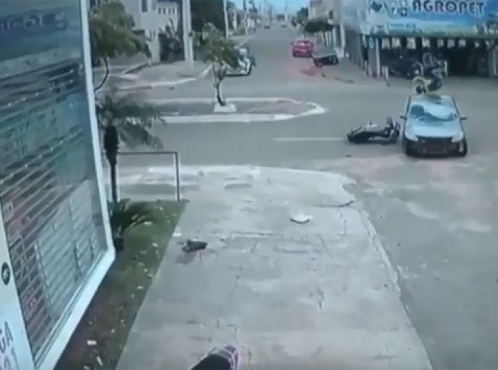 Em Goiás, motociclista "voa" sobre carro após batida e sai andando