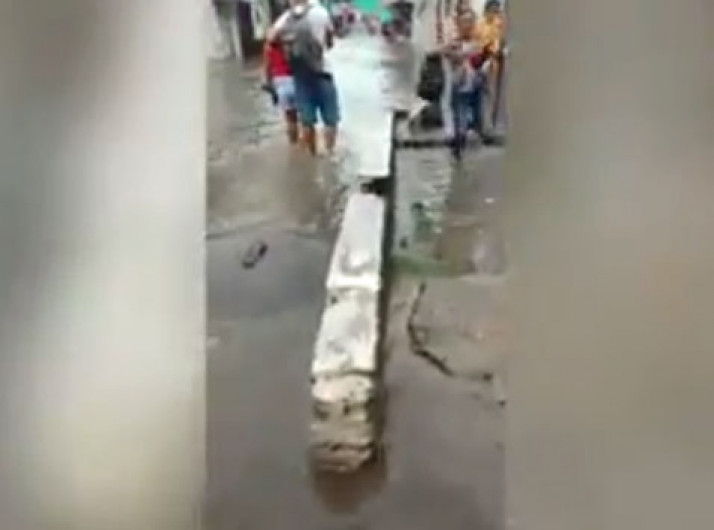 Vídeo mostra momento em que mulher com criança no colo cai em esgoto