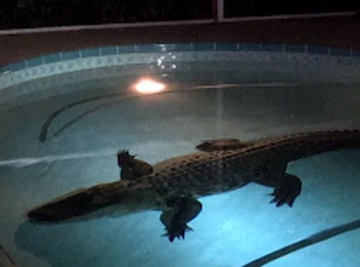 Jacaré com mais de três metros é encontrado nadando em piscina