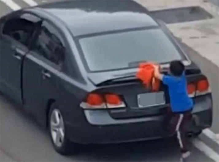 Menino se agarra a carro enquanto mãe ameaça abandoná-lo; veja