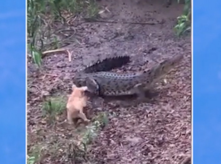 Cachorrinha corajosa expulsa crocodilo na Austrália