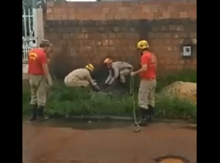 Estava tudo indo bem no resgate do cavalo que caiu no buraco, até que...