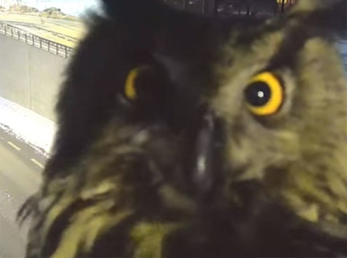 Coruja faz 'selfie' em câmera de trânsito na Finlândia