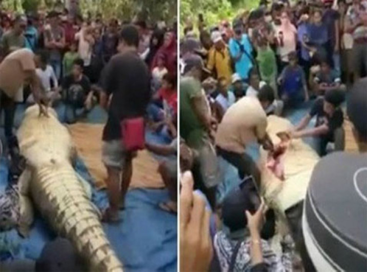 Homens abrem barriga de crocodilo e encontram braços e perna de vítima