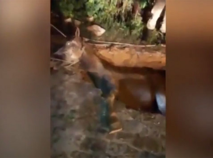 Vídeo mostra resgate de cavalo que caiu em buraco durante chuva