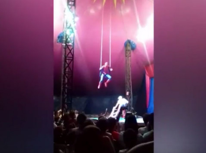 'Homem-Aranha' cai durante apresentação de trapézio em circo