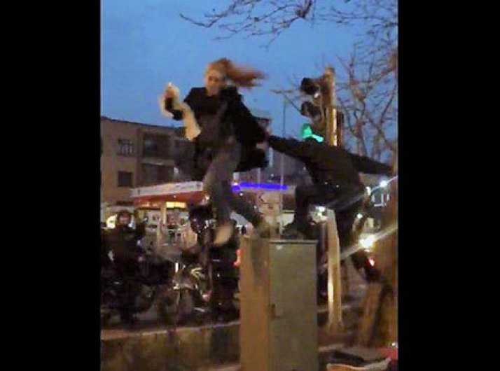 Mulher é empurrada por policial ao protestar contra o uso do véu islâmico