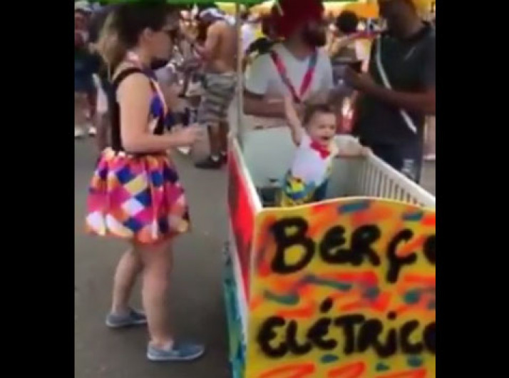 Bebê viraliza nas redes sociais após pular carnaval em 'berço elétrico'