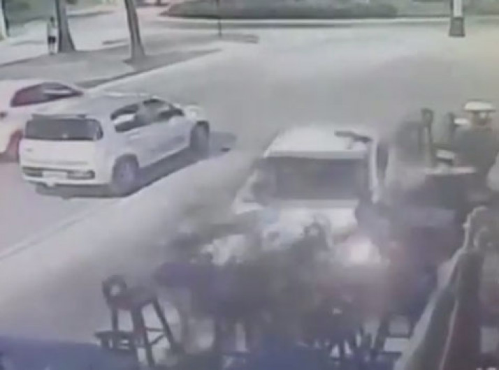 Carro descontrolado invade contramão e atropela mulher na calçada