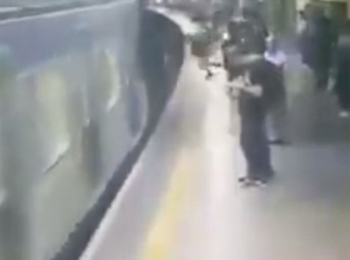 Homem empurra mulher em trilhos do metrô durante passagem de trem