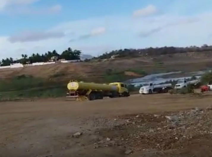 Vídeo mostra 'corrida' de carros-pipa para retirar água de açude