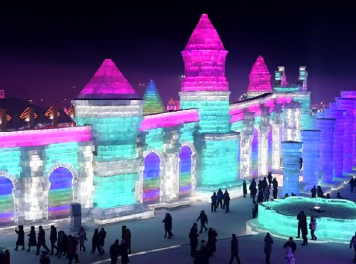 Festival chinês apresenta esculturas de gelo de 35 metros