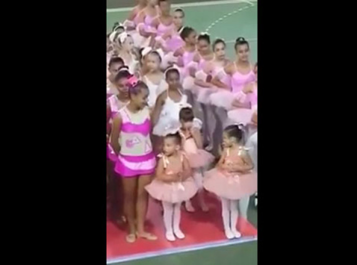 A empolgação era tanta que ela dançou até duranta o Hino Nacional