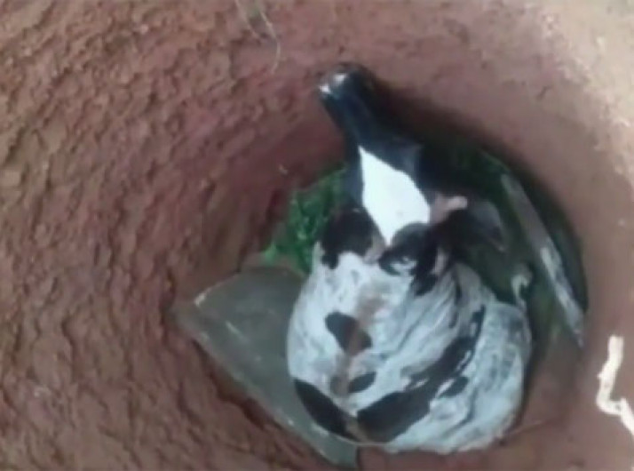 Vídeo mostra vaca sendo resgatada de fossa em Goiânia