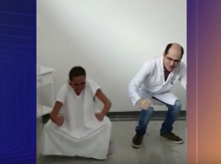 Médico dança e vai até o chão com gestante em trabalho de parto