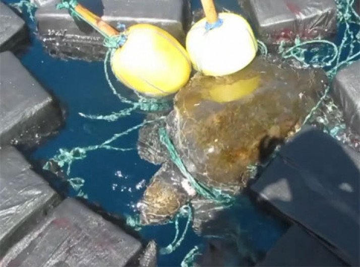 Tartaruga é encontrada presa entre pacotes de cocaína no mar
