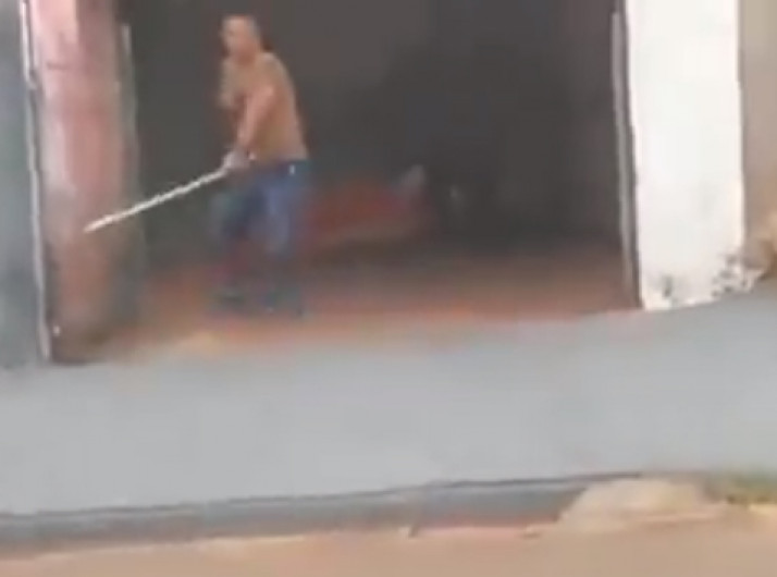 Cercado pela polícia, homem se defende usando um cabo de vassoura