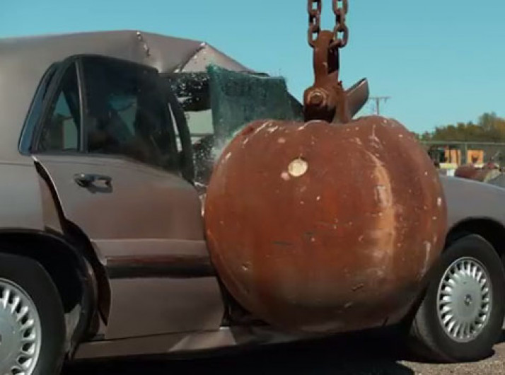 Vídeo mostra o impacto que uma bola de demolição tem em um carro