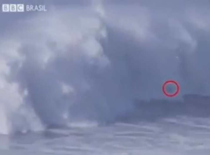 Onda monstruosa quebra as costas de surfista em Portugual