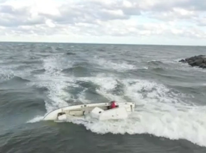 Drone capta momento em que barco afunda e capitão é resgatado