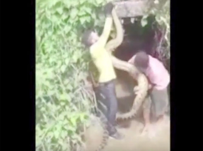 Sucuri de 4m é resgatada após ser agredida e carregada em avenida
