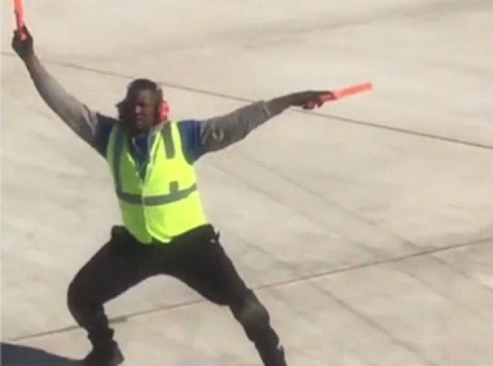 Funcionário dança na pista de aeroporto ao guiar piloto e viraliza