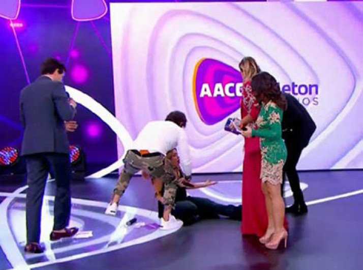 Grávida, Patricia Abravanel cai na apresentação do Teleton