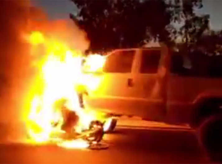 Flagrante mostra motocicleta pegando fogo após acidente nos EUA