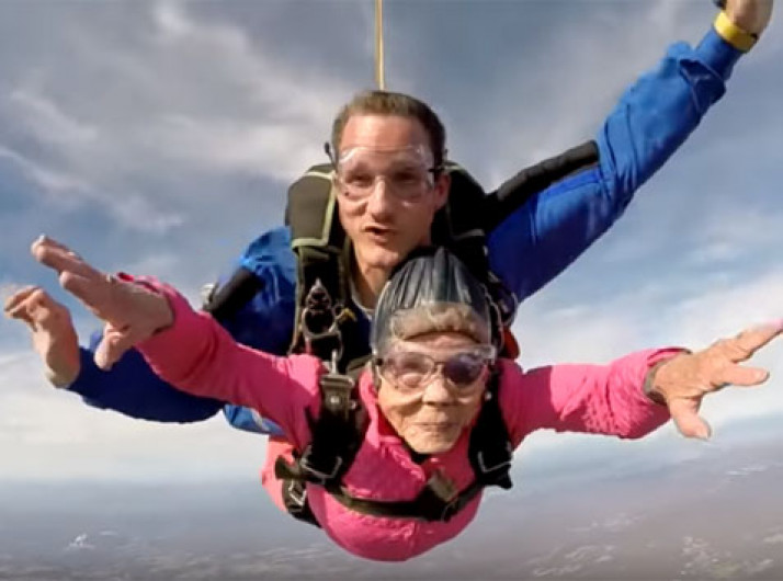 Mulher salta de paraquedas para comemorar seu aniversário de 94 anos
