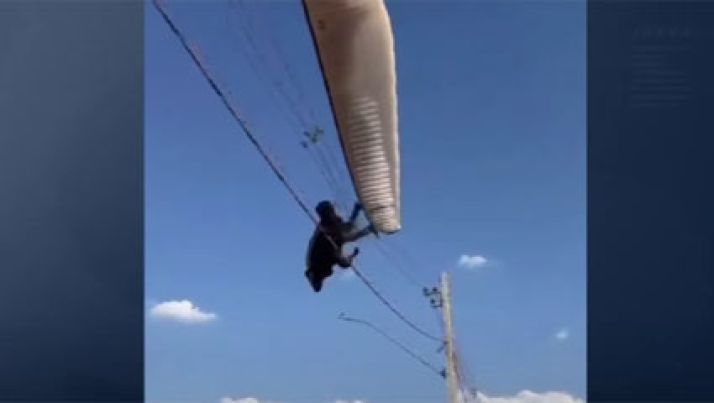 Piloto de parapente se choca com rede elétrica e fica preso na fiação em MG