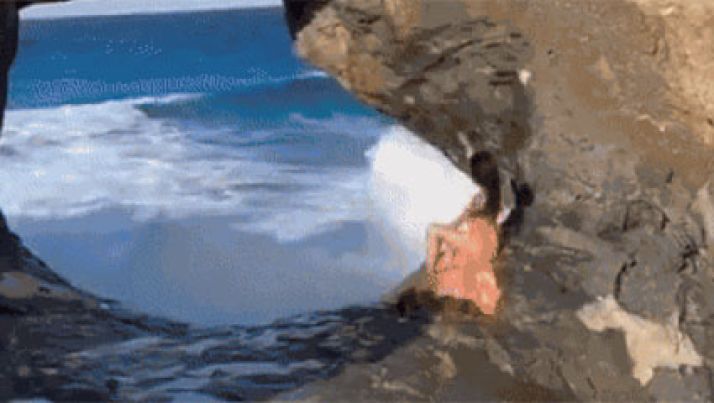 Turista chinesa é atingida por onda gigante enquanto tentava tirar foto; veja