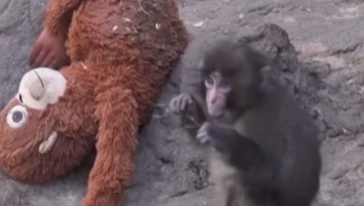 Macaquinho abandonado pela família encontra conforto em pelúcia; assista ao vídeo