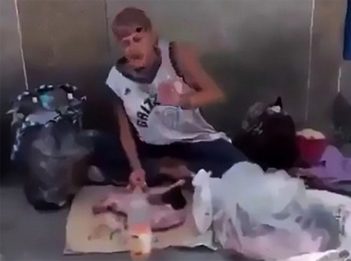 Moradora de rua é obrigada a comer um gato devido à crise na Venezuela