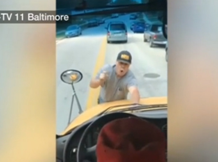 Americano se agarra a capô de ônibus após discussão com estudantes